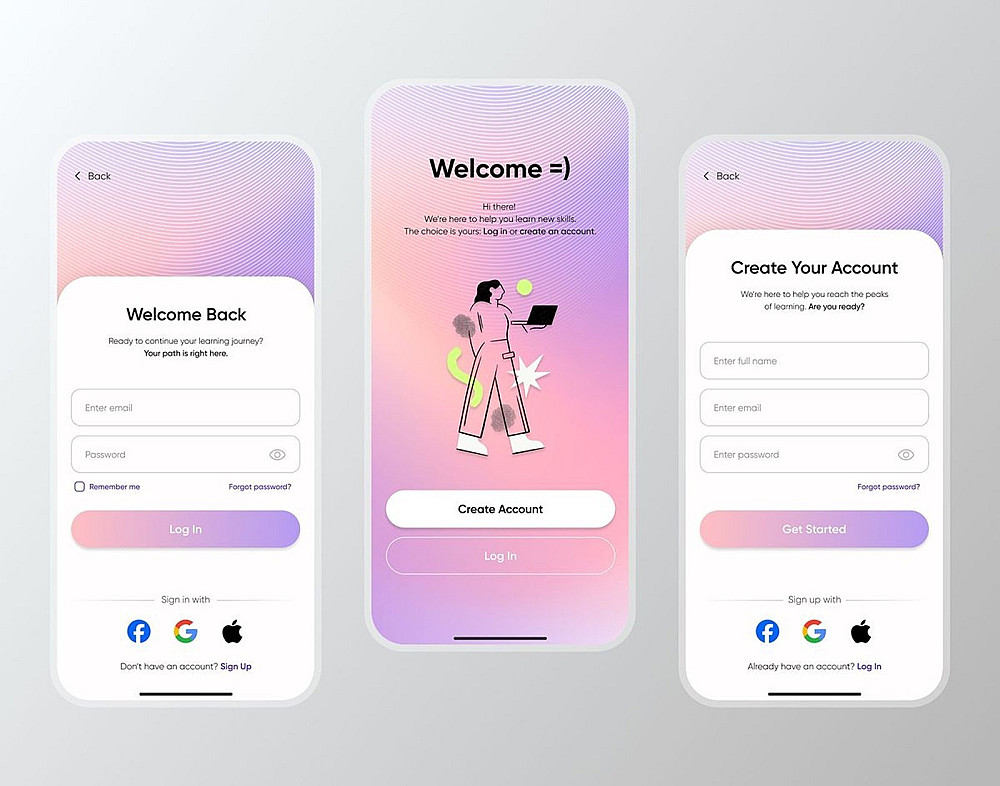 عدد الشاشات: تصميم 3 شاشات لتطبيق موبايل أو صفحة ويب واحدة.