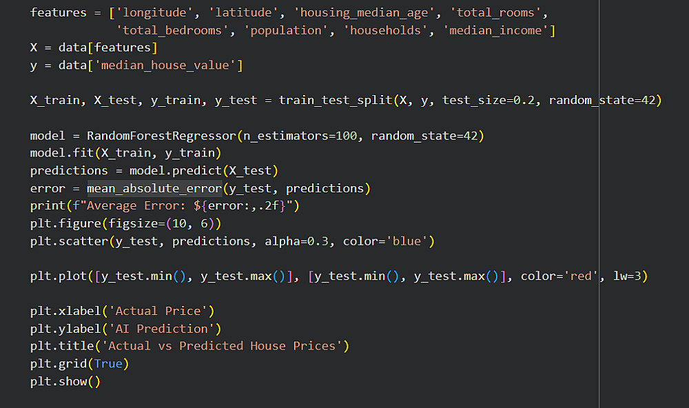 بناء نماذج Regression احترافية: أستخدم نماذج متطورة مثل Random Forest Regressor و Linear Regression لتوقع أسعار العقارات، المبيعات، أو أي قيم رقمية بدقة متناهية.