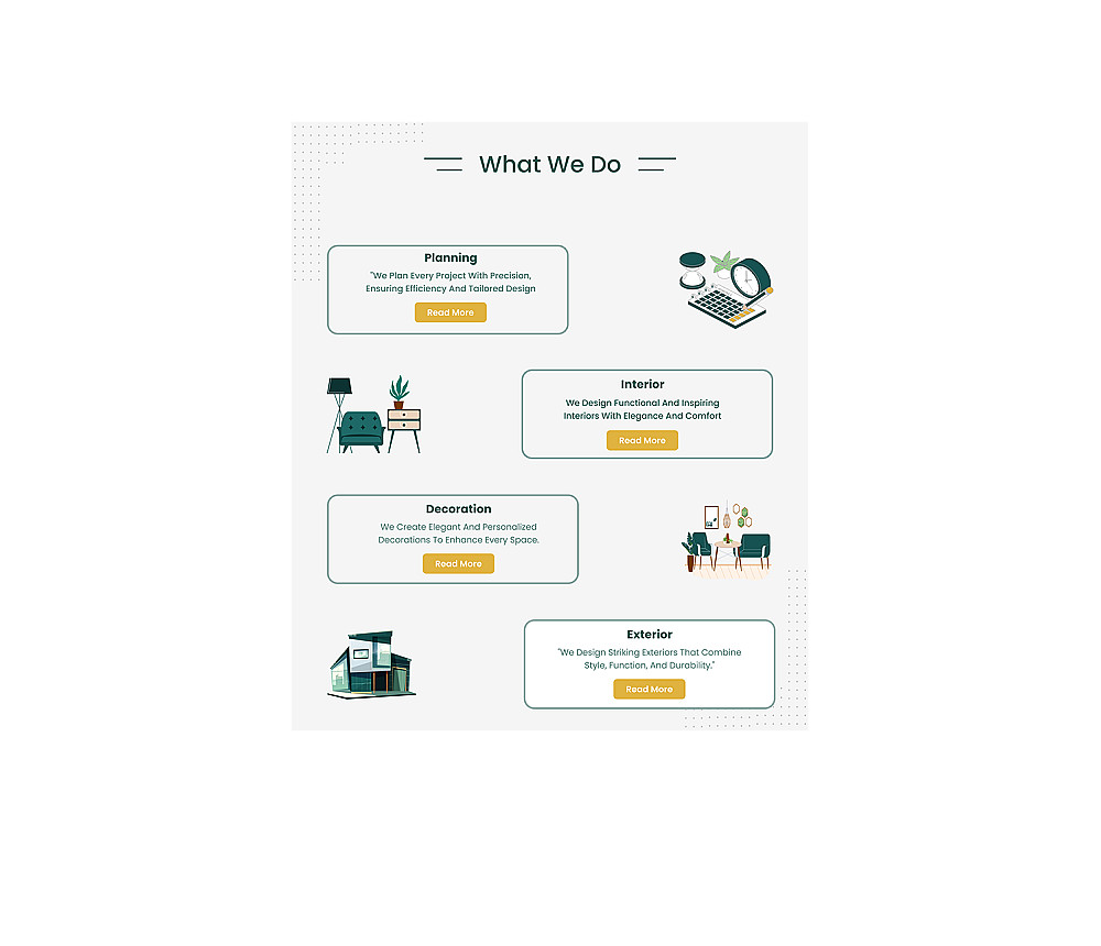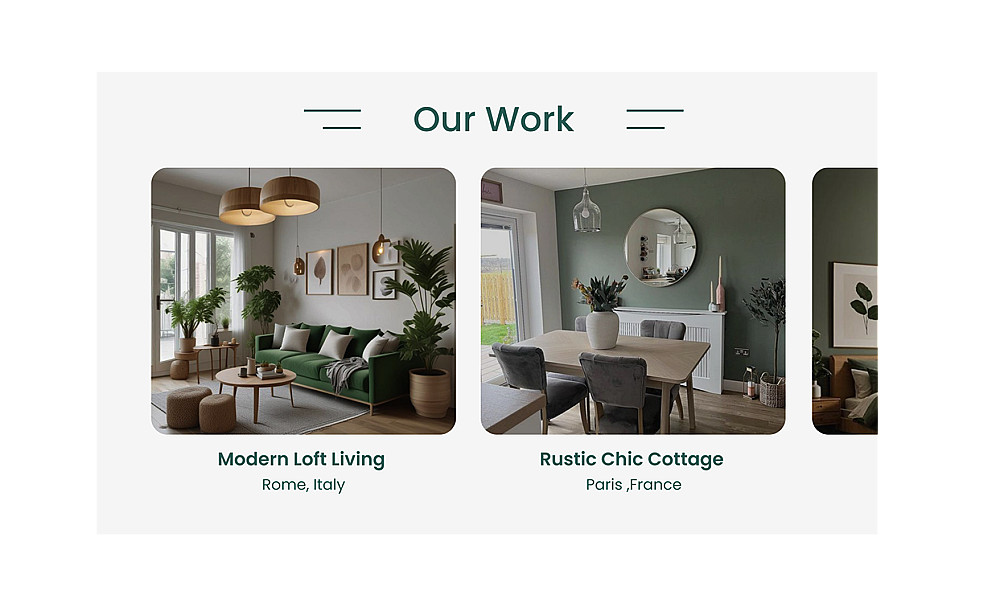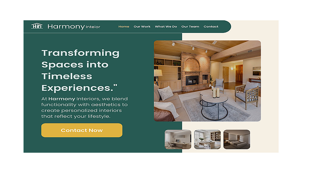 أقدّم لك تصميم موقع إلكتروني متكامل يعرض أعمالك في مجال التصميم الداخلي بأسلوب عصري واحترافي، مع مراعاة تجربة المستخدم وسهولة التصفح على جميع الأجهزة (موبايل، تابلت، ديسكتوب). يشمل الموقع صفحات عن خدماتك، معرض أعمال، من نحن، تواصل معنا، وصفحات إضافية حسب الطلب.