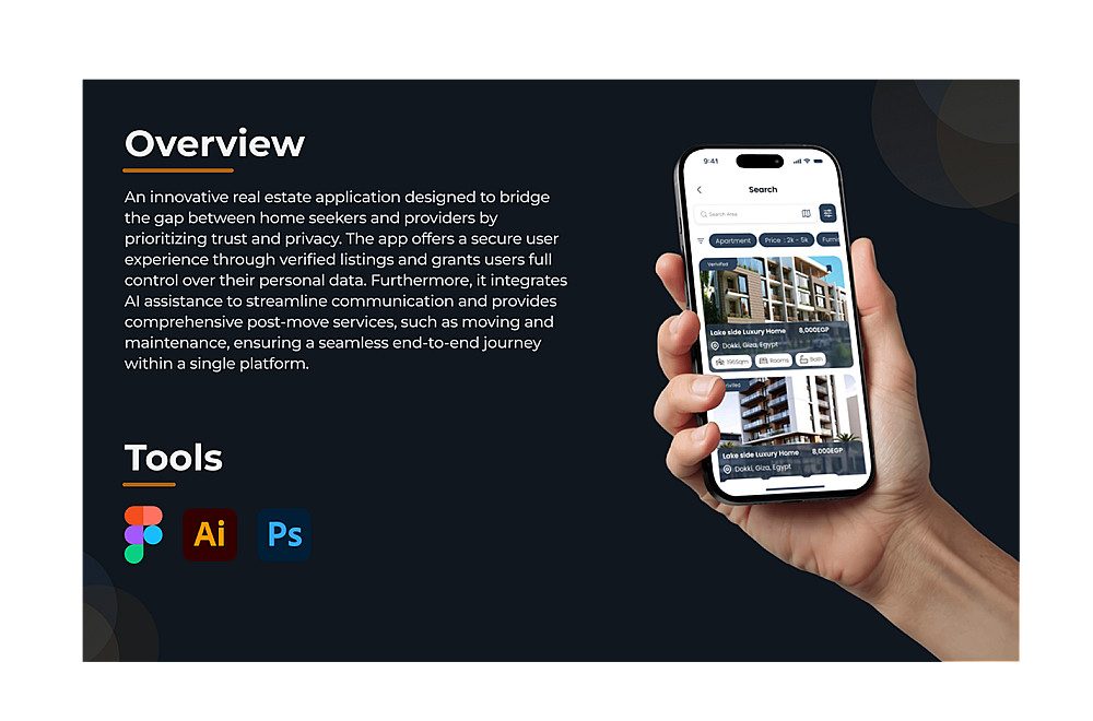 كما يتضمن التطبيق نظام محادثة ذكي بالذكاء الاصطناعي يساعد المستخدمين على الاستفسار والحصول على إجابات سريعة وفعّالة، مما يجعل تجربة البحث عن العقارات والخدمات أكثر سهولة وسلاسة.