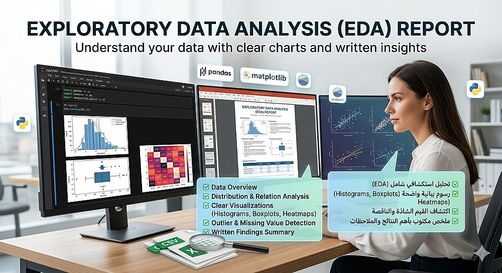 هقدم لك تقرير تحليل استكشافي شامل (EDA) لبياناتك باستخدام Python، يساعدك تفهم بياناتك وتاخد منها قرارات صح.