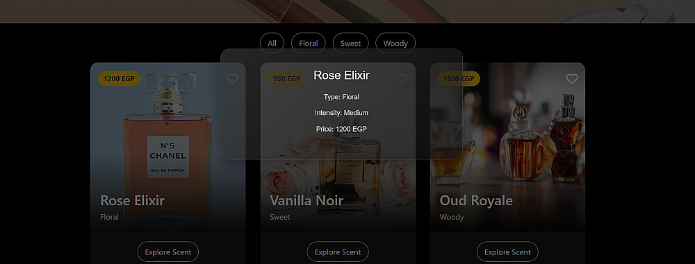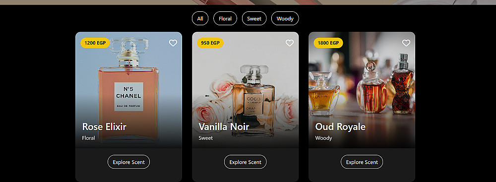 تجربة مستخدم (UI/UX) فاخرة: ترتيب احترافي يعطي مساحة لإبراز صور العطور، المكونات، والماركات بشكل يشجع العميل على الشراء.
