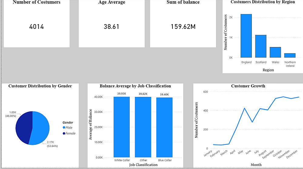 اقدم لحضراتكم خدمة تصميم تقرير تفاعلي بواسطة Power BI لتحويل بياناتك إلى تقارير واضحة تساعدك على فهم الأداء واتخاذ قرارات مبنية على أرقام دقيقة. سأقوم بتنظيف البيانات (إن لزم)، تنظيمها، ثم إنشاء لوحات معلومات تحتوي على أهم مؤشرات الأداء (KPIs) مع رسومات تفاعلية تتيح لك تحليل البيانات بسهولة من أكثر من زاوية. التقرير مكون من صفحة تحتوي على 4 رسوم بيانية.