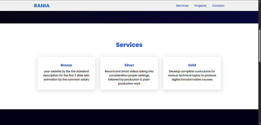سأقوم بتصميم صفحة ويب أو بورتفوليو متجاوبة تمامًا تعمل على جميع الأجهزة (موبايل، تابلت، كمبيوتر)، مع واجهة مستخدم بسيطة وأنيقة.