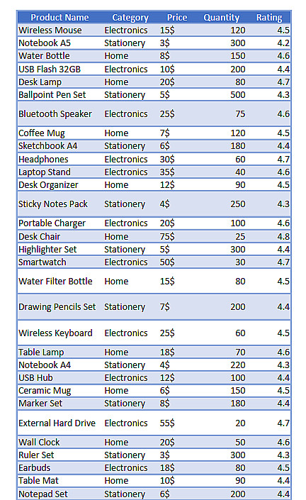 إدخال وتنظيم بيانات المنتجات في ملف Excel