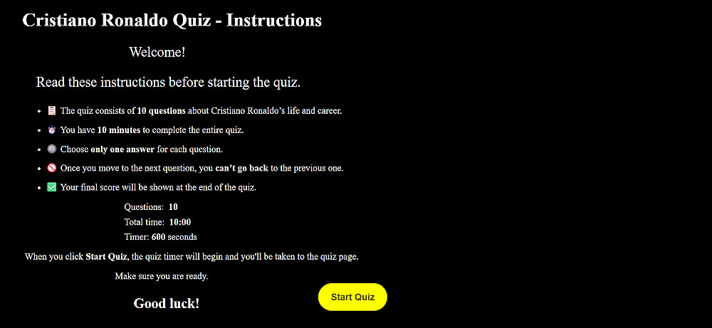 - صفحات مخصصة للتسجيل، الترحيب، عرض النتيجة، وتنبيه انتهاء الوقت.