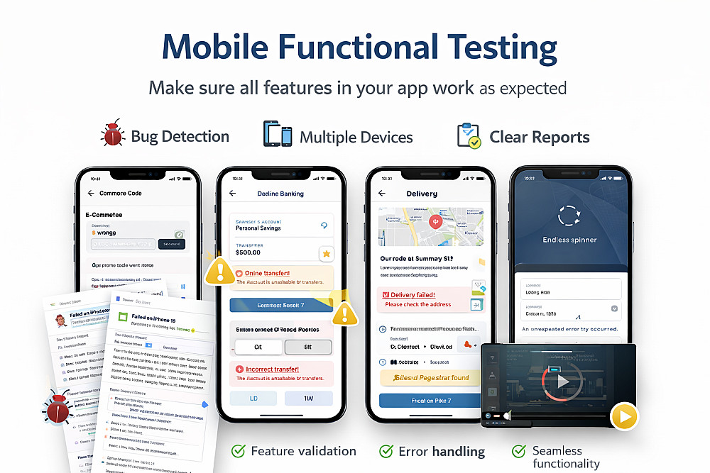 الاختبار الوظيفي لتطبيقات المحمول (software mobile functional testing) مع تقارير احترافية