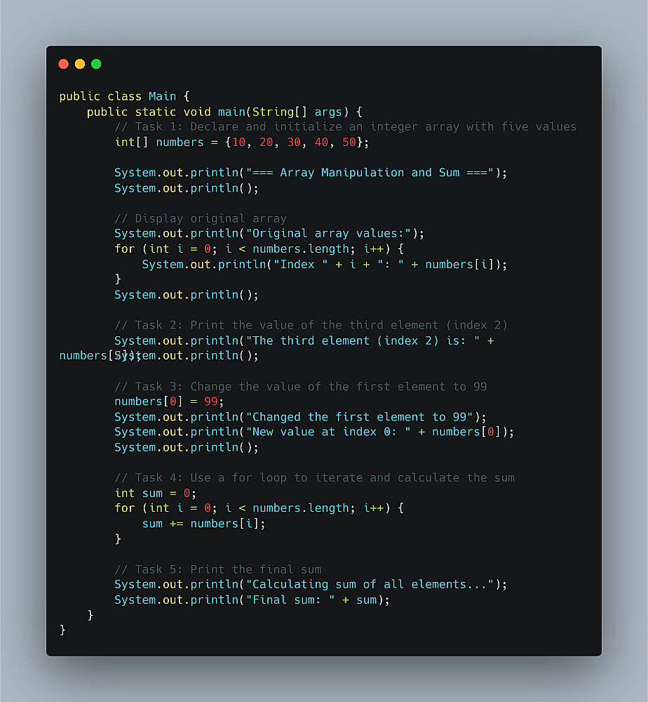 تطبيق Java لإدارة المصفوفات وحساب مجموع عناصرها