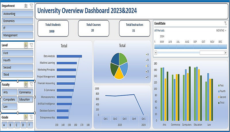 أقدّم خدمة تصميم داشبورد احترافي باستخدام Microsoft Excel يساعدك على تحليل بياناتك وعرضها بشكل واضح وسهل الفهم.