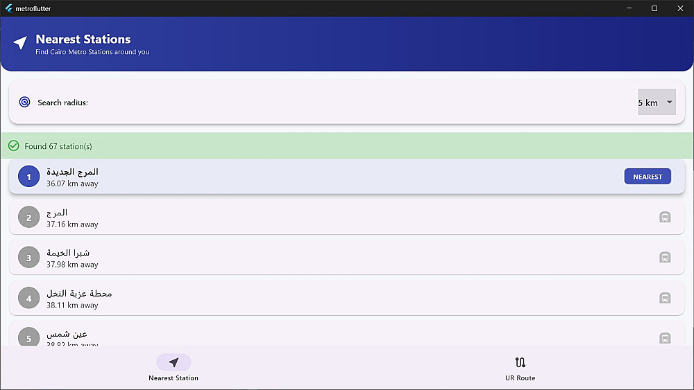 تحديد أقرب محطة مترو للمستخدم حسب نطاق البحث بالكيلومترات.