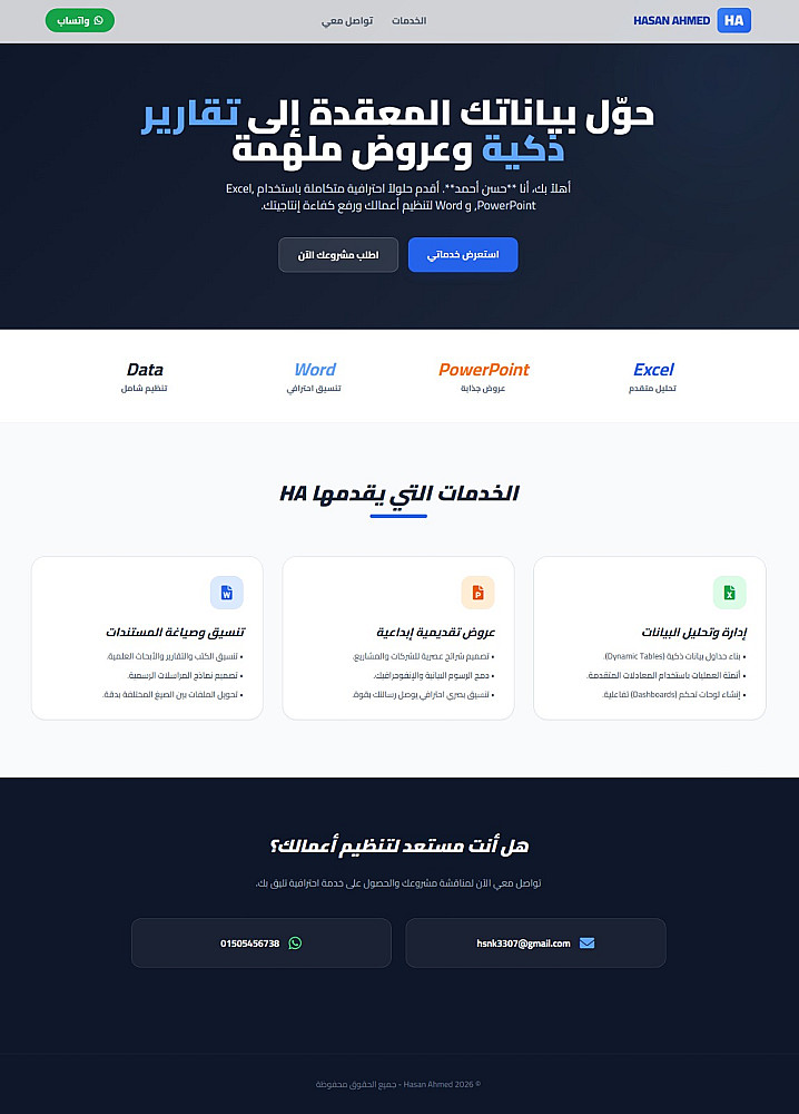 مرحبًا! أنا مهندس برمجيات Full Stack .NET Developer متخصص في بناء مواقع وتطبيقات ويب احترافية ومتجاوبة لجميع الأجهزة باستخدام ASP.NET Core و SQL Server.