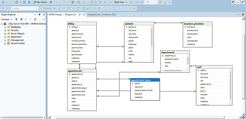 هل تبحث عن هيكلة قوية لبيانات مشروعك؟ سواء كنت تبحث عن نظام إدارة مستشفيات، تحليل بيانات رياضية، أو أي نظام مؤسسي معقد، أقدم لك خبرتي في بناء قواعد بيانات باستخدام SQL Server.