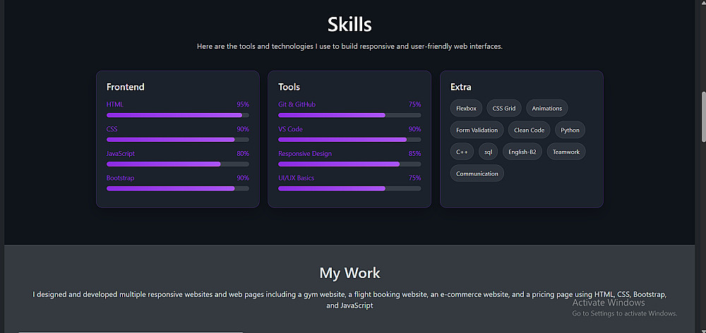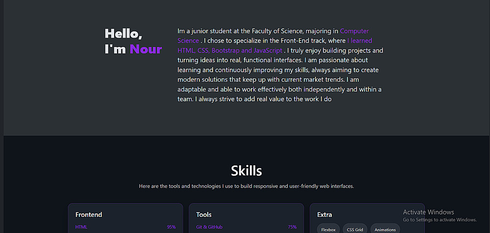 هو موقع شخصي يعرض مهاراتي وأعمالي في تطوير واجهات الويب، حيث يحتوي على مجموعة من المشاريع التي قمت بتطويرها لعرض خبرتي العملية في تصميم وتطوير المواقع. يتيح الموقع للزوار التعرف على مهاراتي التقنية، الاطلاع على نماذج من أعمالي، والتواصل معي بسهولة.