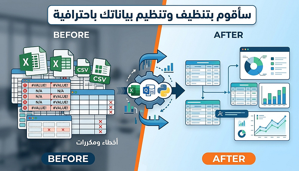 أعمل باستخدام Excel وPower Query وPython عند الحاجة لضمان أفضل جودة للبيانات.