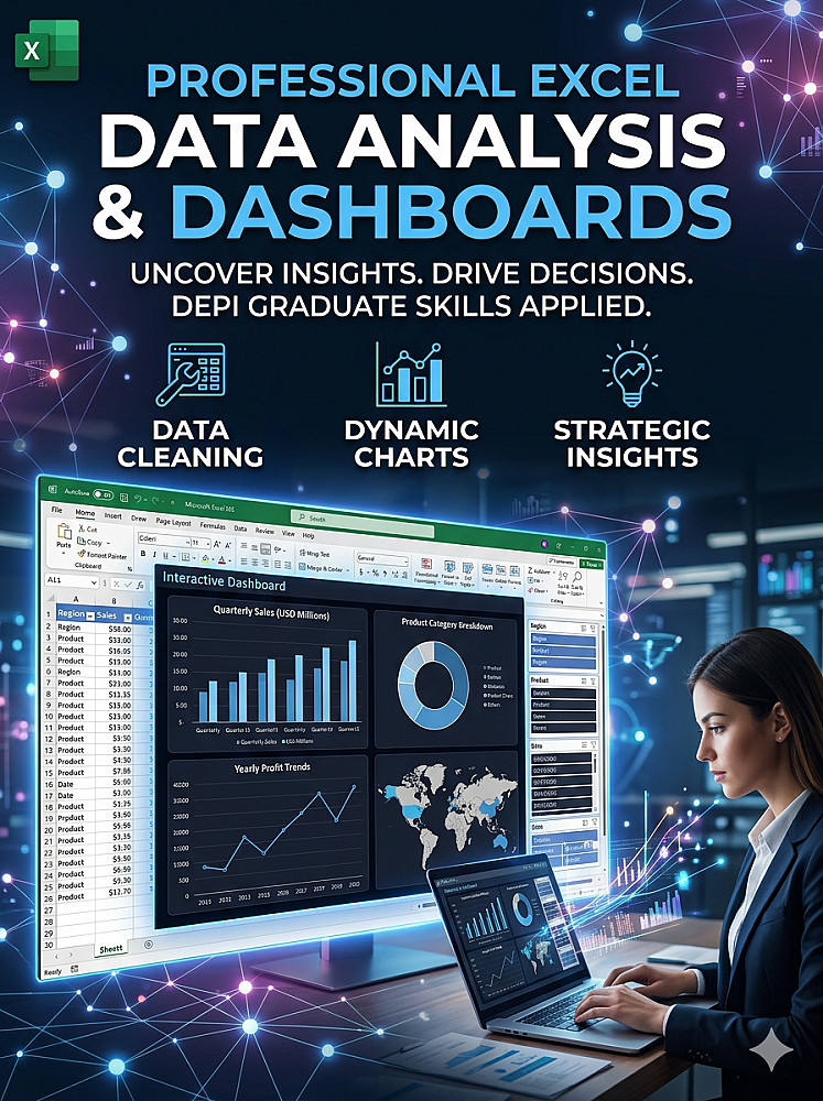 "هل تملك بيانات ضخمة وترغب في تحويلها إلى قرارات ذكية؟ بصفتي خريجة مبادرة رواد مصر الرقمية (DEPI) المتخصصة في تحليل البيانات، أقدم لك خدمة احترافية لتحويل بياناتك الخام إلى تقارير بصرية تفاعلية تدعم نمو أعمالك.