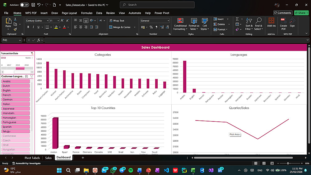 بصفتي خبيراً في تحليل البيانات باستخدام Excel، أقدم لك الحل الأمثل لتحويل جداول البيانات الضخمة والمملة إلى داشبورد (Dashboard) تفاعلي واحترافي يساعدك على اتخاذ قرارات عمل ذكية ودقيقة في ثوانٍ.