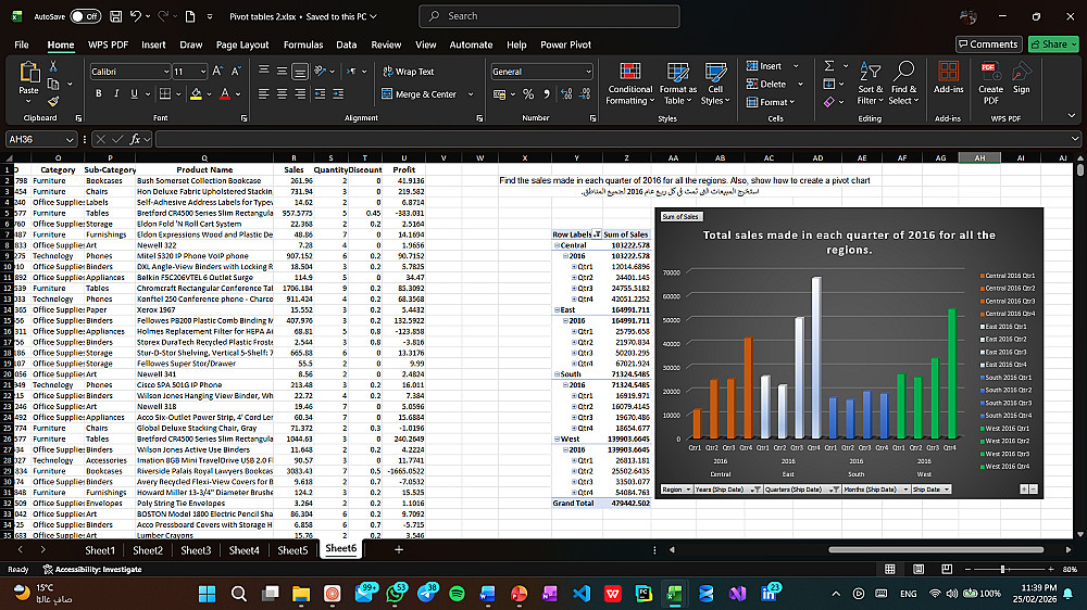 - تصميم لوحات تحكم مرنة تتيح لك فلترة وعرض البيانات (حسب المنطقة، الزمن، أو المنتج) بضغطة زر واحدة باستخدام الـ Slicers