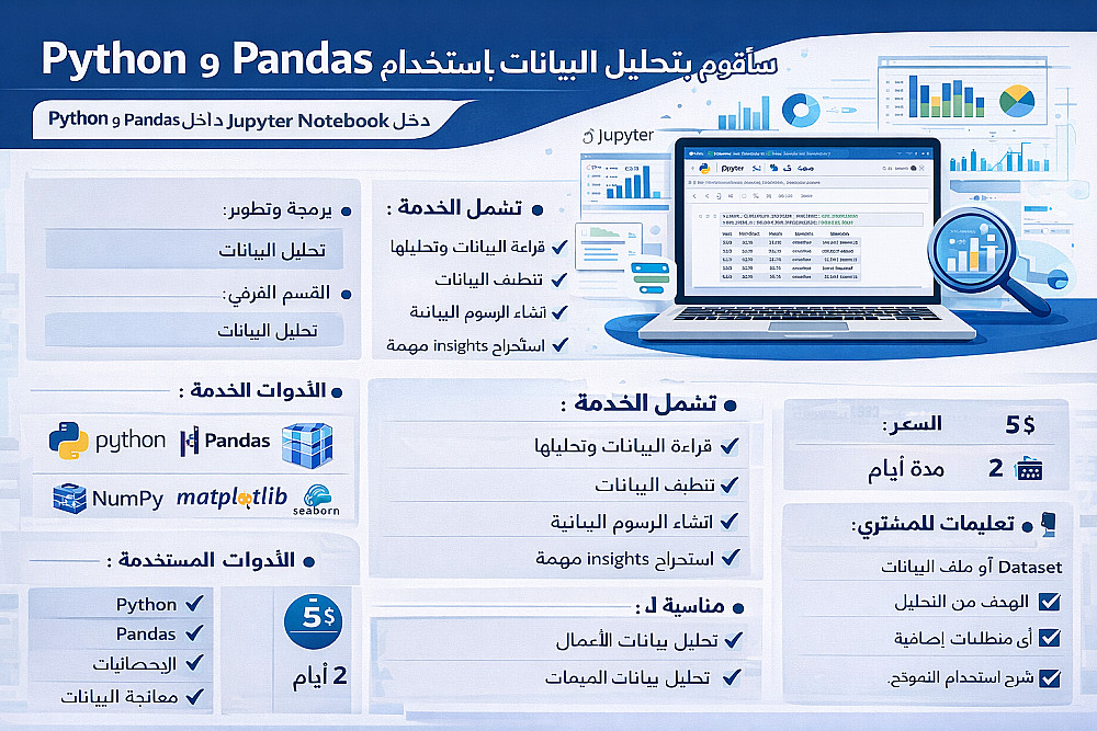 سأقوم بتنظيف البيانات وتحليلها واستخراج أهم المعلومات منها باستخدام Pandas وأدوات تحليل البيانات.