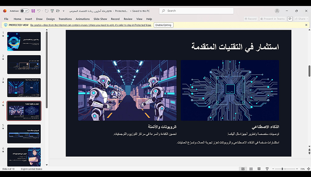 تسليم العرض بصيغة PowerPoint أو رابط Canva حسب الطلب