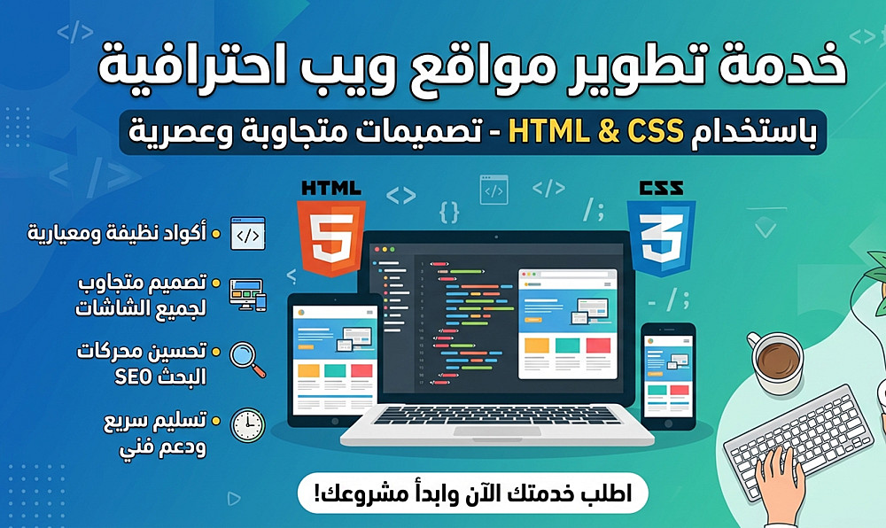 أقوم بإنشاء صفحات ويب نظيفة وسريعة الاستجابة وجذابة بصريًا باستخدام HTML وCSS. سواء كنت بحاجة إلى صفحة واحدة، أو موقع كامل متصفح، أو مكونات موقع ويب مخصصة مما يضمن سرعة تحميل عالية وأداء ممتاز على جميع الأجهزة.
