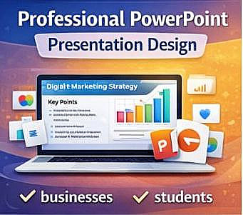 إذا كنت تحتاج عرض باوربوينت منظم وجذاب لعرض مشروعك أو فكرتك، يمكنني تصميم سلايدات احترافية تساعدك على توصيل المعلومات بشكل واضح ومميز.