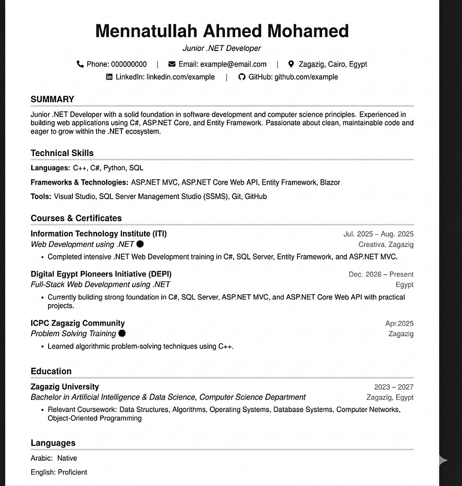 أقدّم لك خدمة تصميم سيرة ذاتية (CV / Resume) احترافية ومتوافقة مع أنظمة ATS التي تستخدمها الشركات لفحص السير الذاتية قبل وصولها لمسؤولي التوظيف.