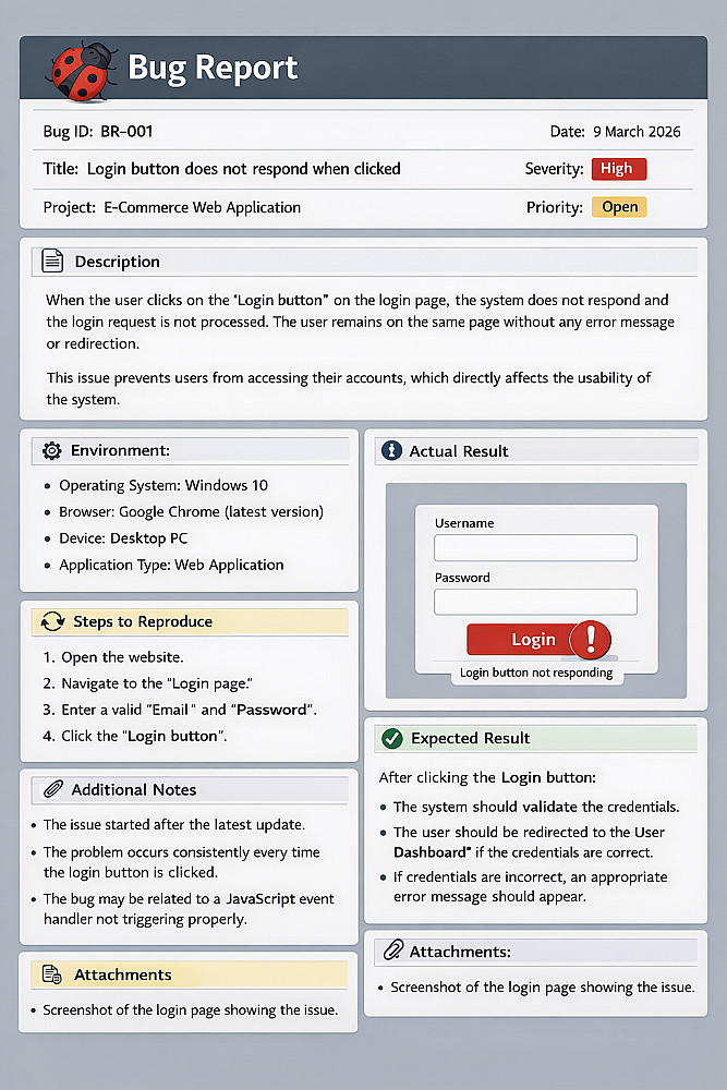 تقارير تقنية منظمة (Bug Reports): ستحصل على تقرير احترافي (PDF/Excel) يتضمن وصف دقيق لكل خطأ