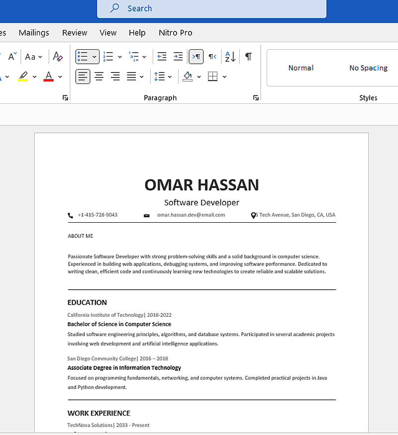 -سيرة ذاتية احترافية من صفحتين كحد أقصى