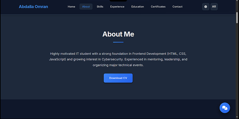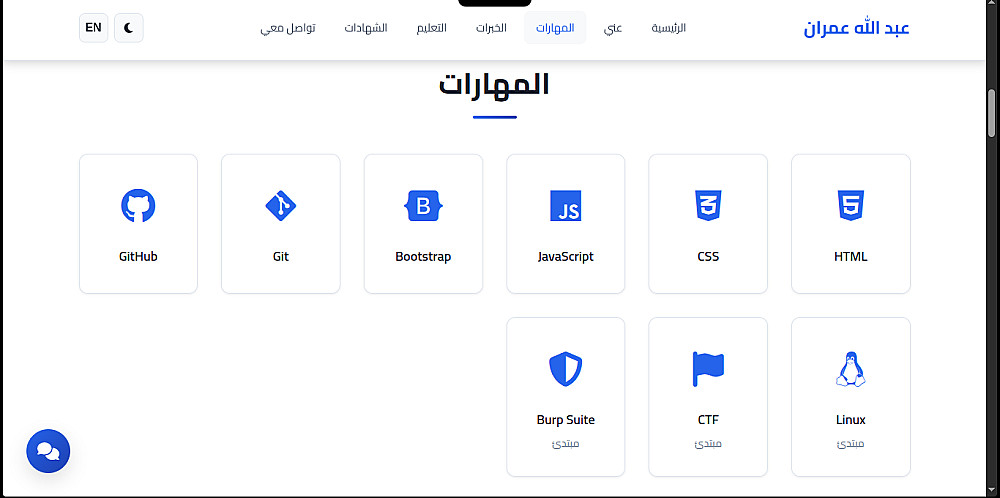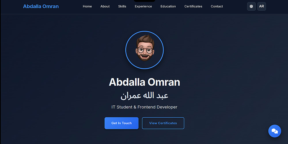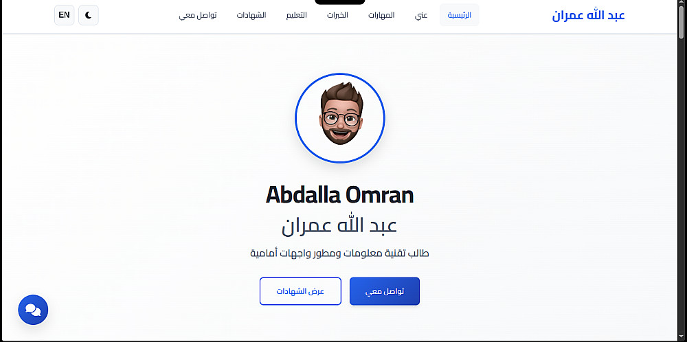 سأقوم بتصميم صفحة شخصية (Single Page Website) احترافية بالكامل باستخدام HTML/CSS/JS، وبمظهر عصري متجاوب مع جميع الأجهزة.