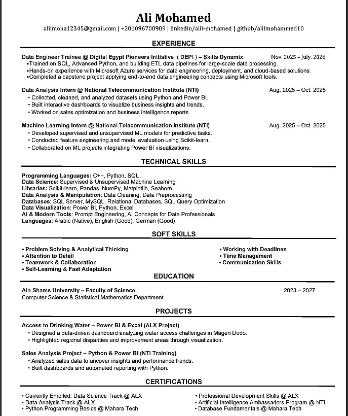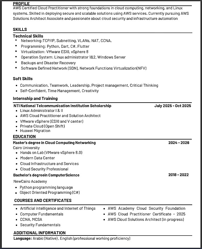 سأقوم بإنشاء سيرة ذاتية (CV / Resume) احترافية متوافقة مع أنظمة ATS، موجهة لوظائفك المستهدفة، وبأسلوب بسيط يسهل قراءته من قبل برامج الفرز ومديري التوظيف.