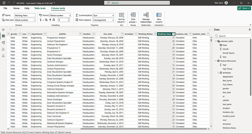 - ترتيب البيانات وتنسيق الأعمدة
