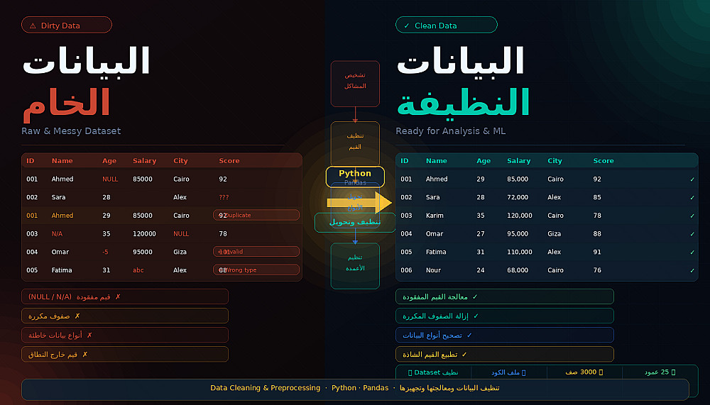 تنظيف البيانات ومعالجتها وتجهيزها لمشاريع تحليل البيانات وMachine Learning باستخدام Python