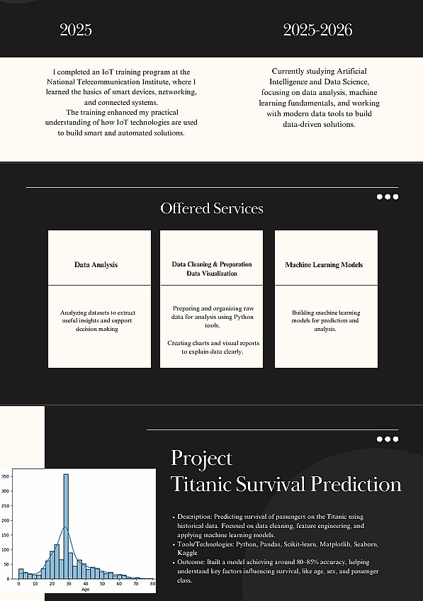 أقدم خدمة إنشاء بورتفوليو منظم وجذاب يساعدك على عرض أعمالك بطريقة احترافية سواء للتقديم على وظائف أو العمل الحر.