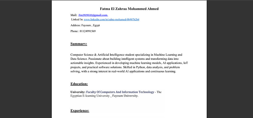 سأقوم بإنشاء أو تحسين السيرة الذاتية الخاصة بك بشكل احترافي لتبرز مهاراتك وخبراتك بطريقة واضحة وجذابة لأصحاب العمل.