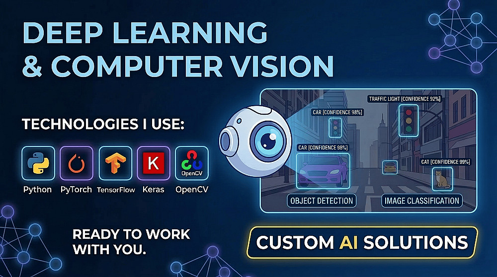 أقدم لك خبرتي في بناء وتطوير نماذج التعلم العميق (Deep Learning) والرؤية الحاسوبية (Computer Vision) باستخدام Python وأحدث المكتبات مثل TensorFlow و PyTorch.