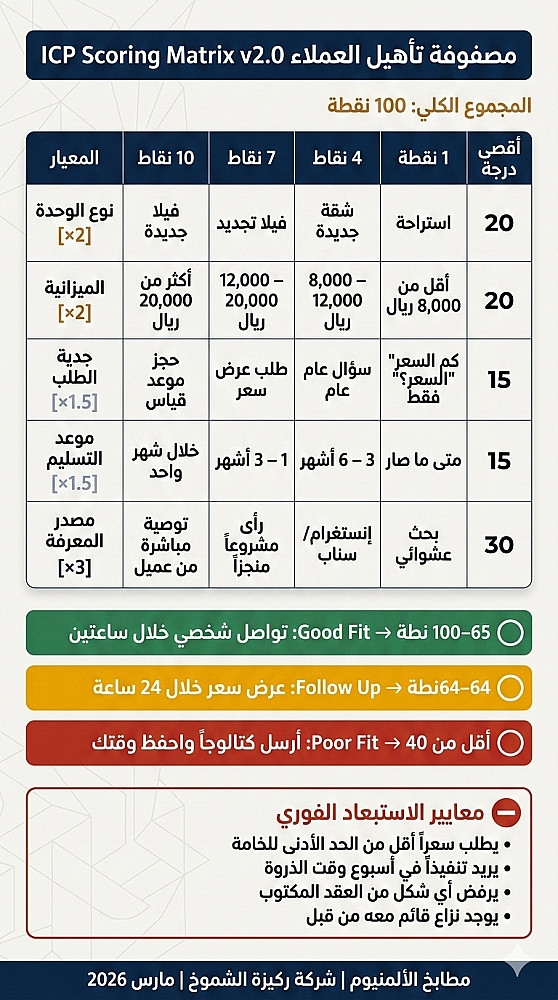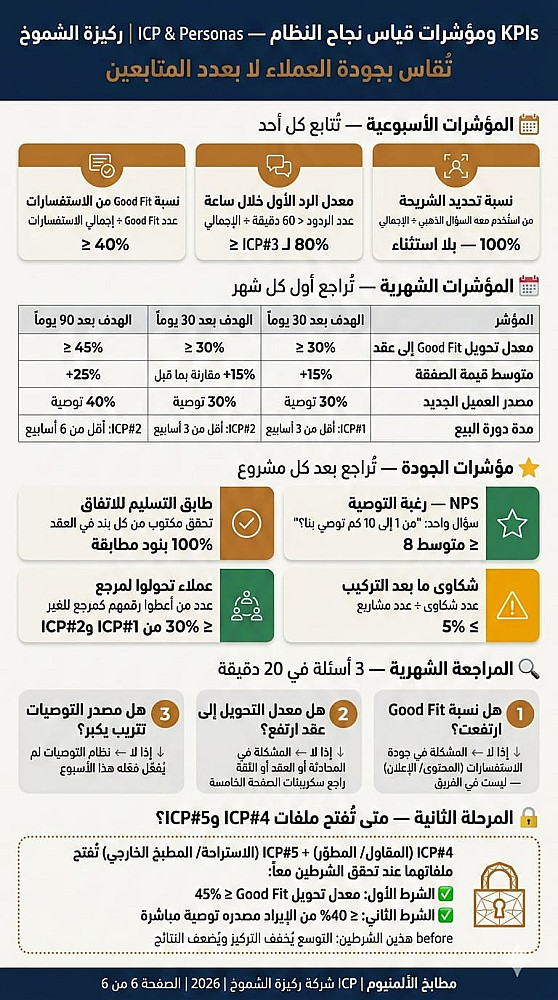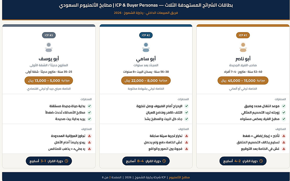 بناء نظام معرفة العميل المثالي ICP + بطاقات Persona + مصفوفة تأهيل جاهزة للتطبيق