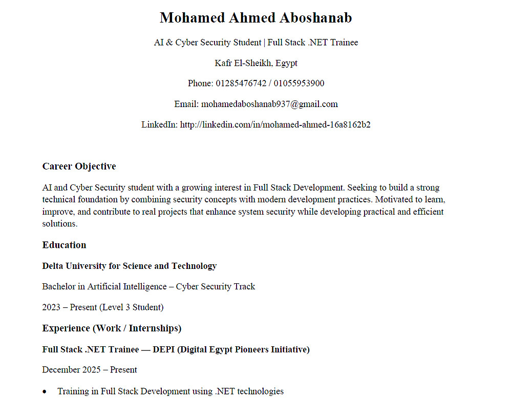 سأقوم بتحويل سيرتك الذاتية إلى CV احترافي، منظم، وجذاب يزيد من فرص حصولك على المقابلات الوظيفية.
