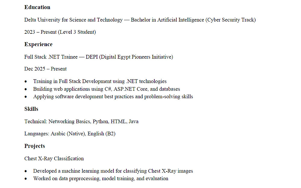 أنا متخصص في إعداد السير الذاتية الاحترافية المتوافقة مع أنظمة تتبع المتقدمين ATS التي تستخدمها الشركات العالمية لفلترة السير الذاتية.