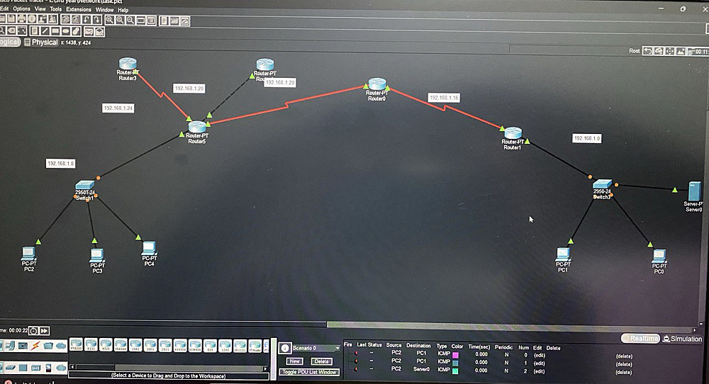 قمت بتصميم وبناء نموذج شبكة محاكاة متكامل باستخدام برنامج Cisco Packet Tracer. المشروع يوضح كيفية ربط الأجهزة المختلفة داخل بيئة عمل واحدة لضمان تواصل سريع وآمن بين الأقسام.