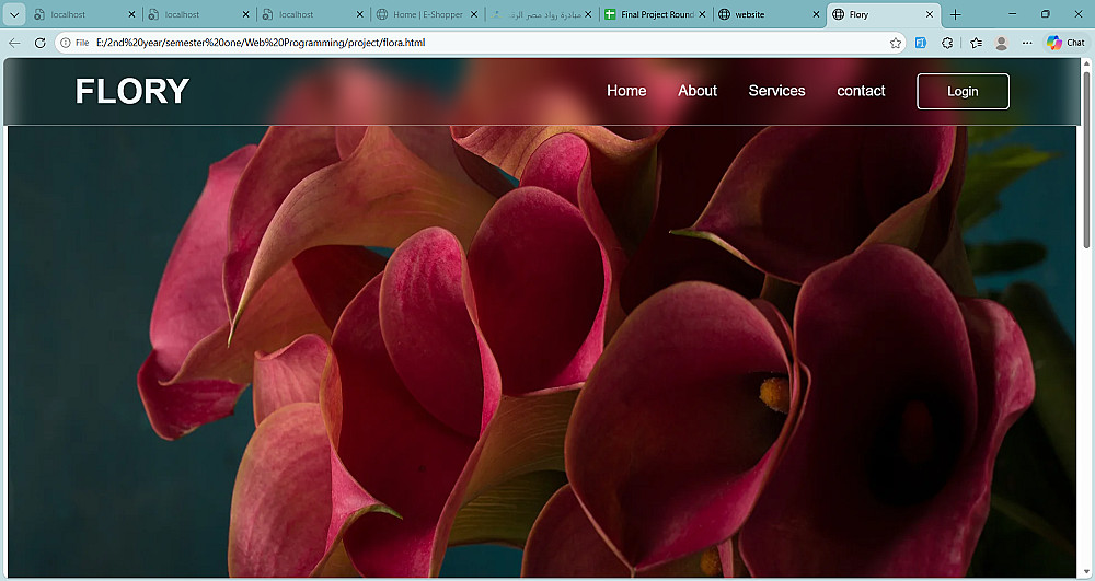 قمت بتطوير واجهة مستخدم (UI) احترافية وعصرية لموقع "محل زهور"، حيث ركزت على تحويل التصميم إلى كود نظيف ومتوافق مع المعايير. هذا المشروع يمثل "واجهة العرض" (Front-end) التي تعكس هوية المحل، مع الاهتمام بتجربة المستخدم وتنسيق العناصر بشكل بصري جذاب.