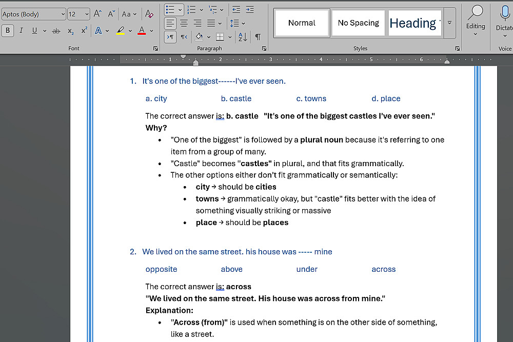 ملف Word يحتوي على النصوص مكتوبة ومنسقة