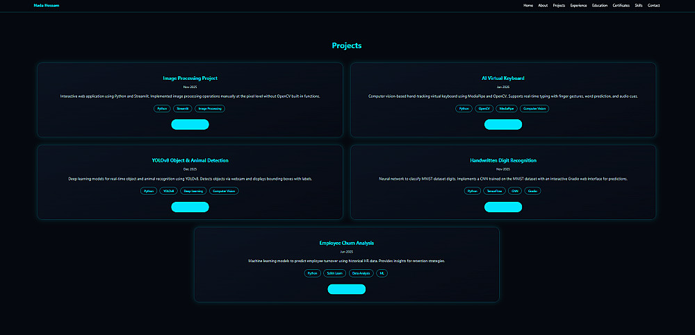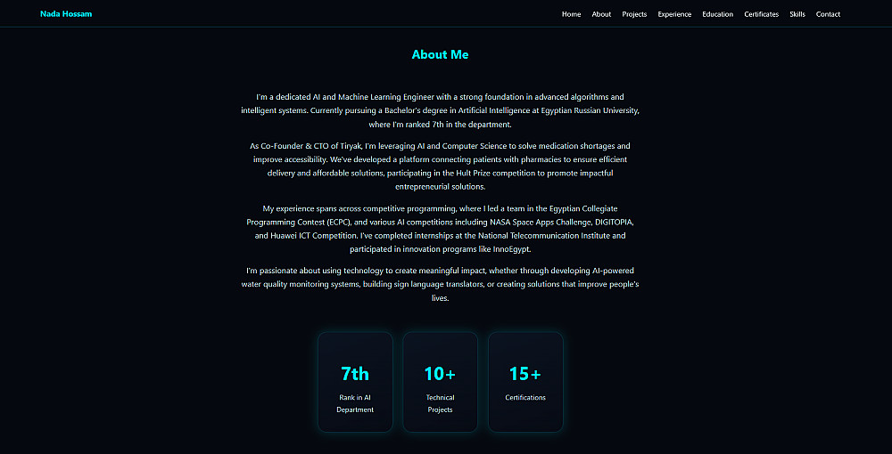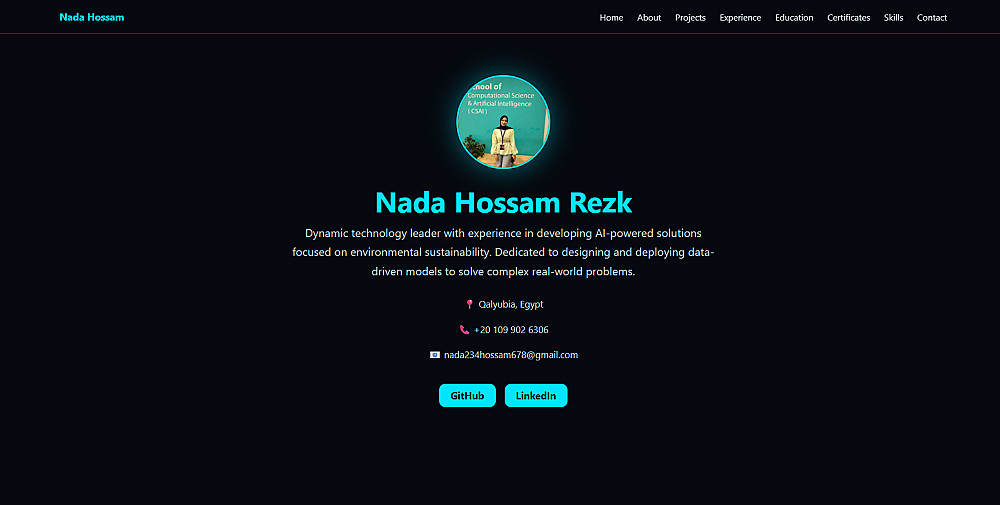 أنا مطورة Web و AI، أقوم بتصميم Portfolio شخصي باستخدام HTML و CSS بشكل سريع وخفيف، مناسب للمبرمجين والطلاب لعرض أعمالهم بطريقة جذابة.