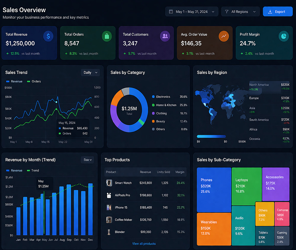 تصميم Dashboard تفاعلي وسهل الاستخدام