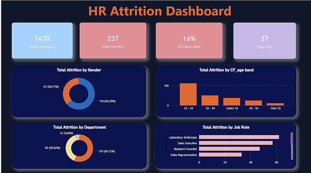 تحليل معدل الدوران الوظيفي (Attrition Analysis): تتبع أسباب تسرب الموظفين، وتقسيمهم حسب العمر، الجنس، القسم، والمسمى الوظيفي.