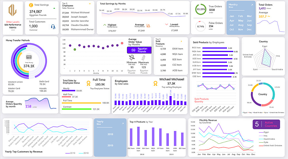 تقييم أداء الموظفين والمنتجات: تحديد أفضل الموظفين تحقيقاً للمبيعات، وأكثر المنتجات طلباً في السوق.