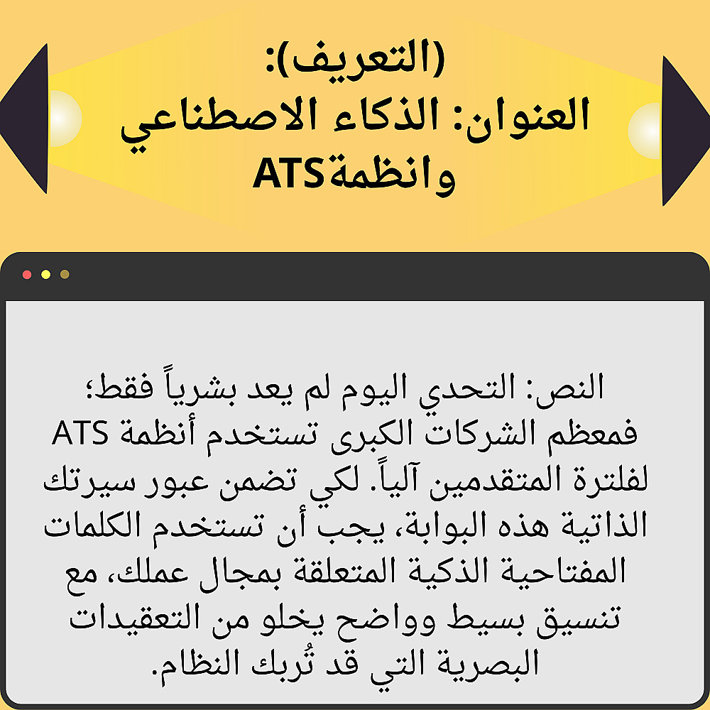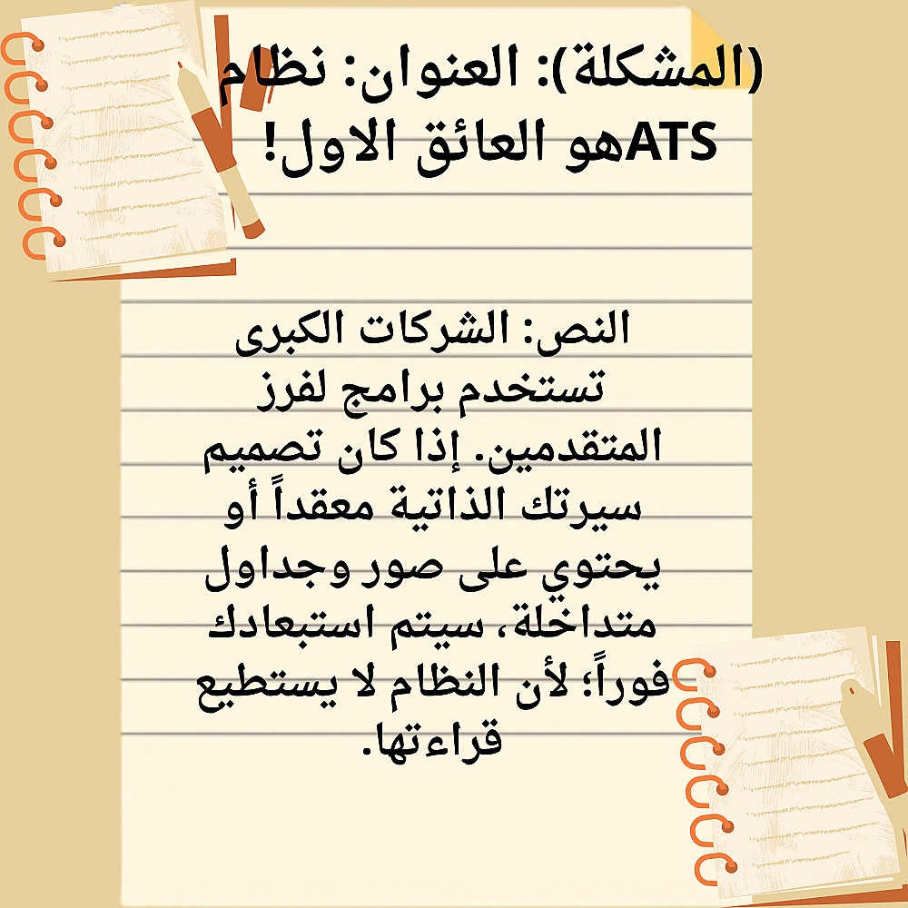 دليل PDF شامل: يشرح لك بأسلوب مبسط كيف تكتب محتوى سيرتك الذاتية بنفسك، كيف تختار الكلمات المفتاحية، وكيف تجتاز أنظمة الـ ATS بنجاح.