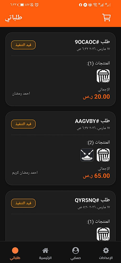 صفحة الطلبات