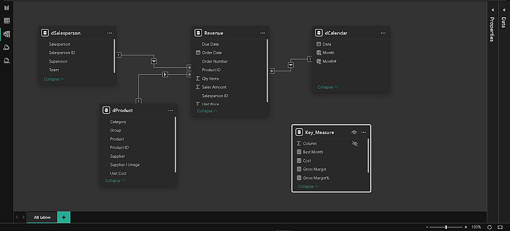 تصميم Data Model منظم وربط الجداول ببعضها.