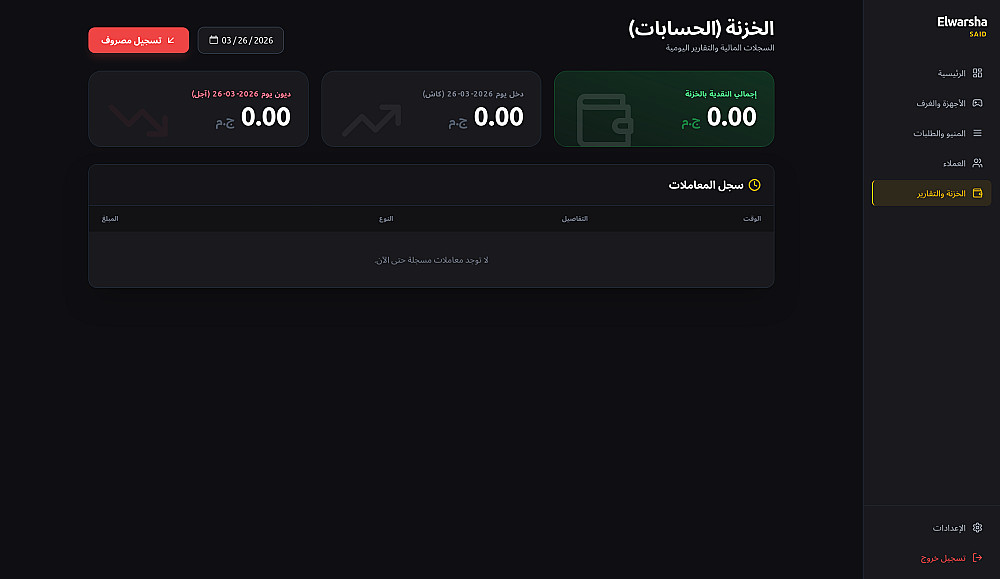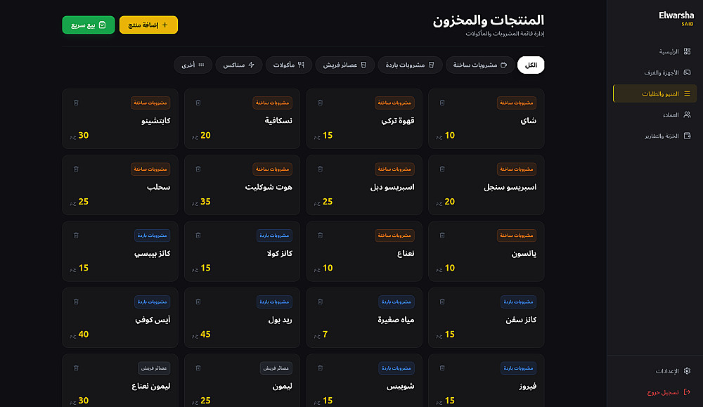 تتبع وتسجيل المبيعات للمشروبات، السناكس، والوجبات.