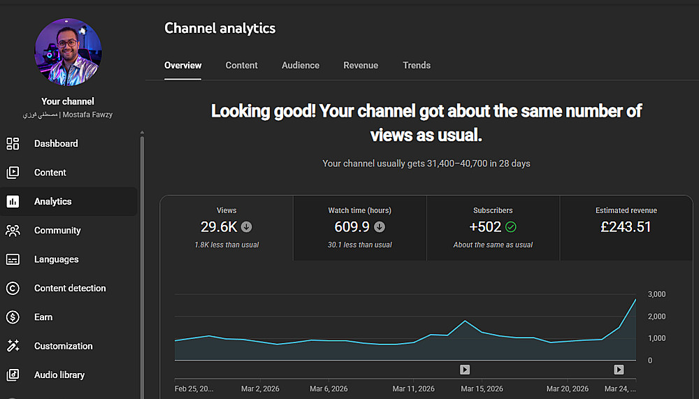 أنا مصطفى فوزي، متخصص يوتيوب SEO بخبرة تتجاوز 10 سنوات في التسويق الرقمي، وعملت مع قنوات في مصر والإمارات والسعودية.